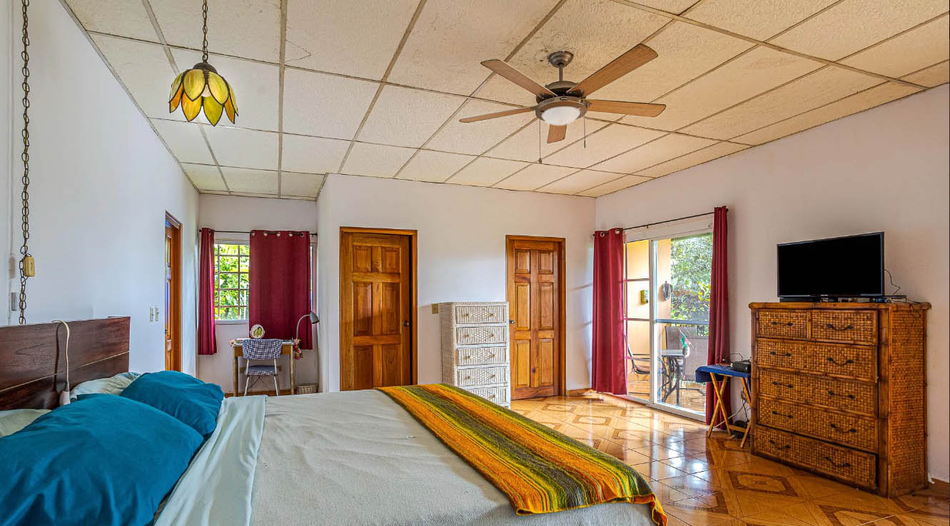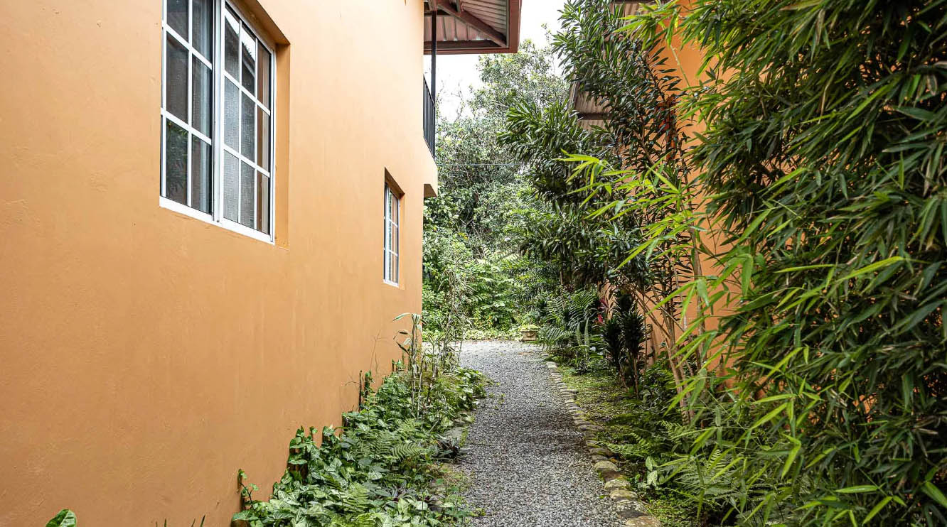 The property is mostly flat with a slight slope. It enjoys gorgeous views towards Jaramillo and the Talamanca Ridge. There are several fruit trees on the property such as guava, limes, bananas, pineapples, Nance Tree, and ginger. Speaking of plants, this property is blessed with many delightful varieties including African Tulips, Triangular Palms, a variety of orchids, several types of Hibiscus, Bougainvillea, Satin leaf trees, Almond, Morning Glories, Pine trees, Ferns, Tropical Cactus, Fan palms, Jazmine trees and Marmalade bushes.