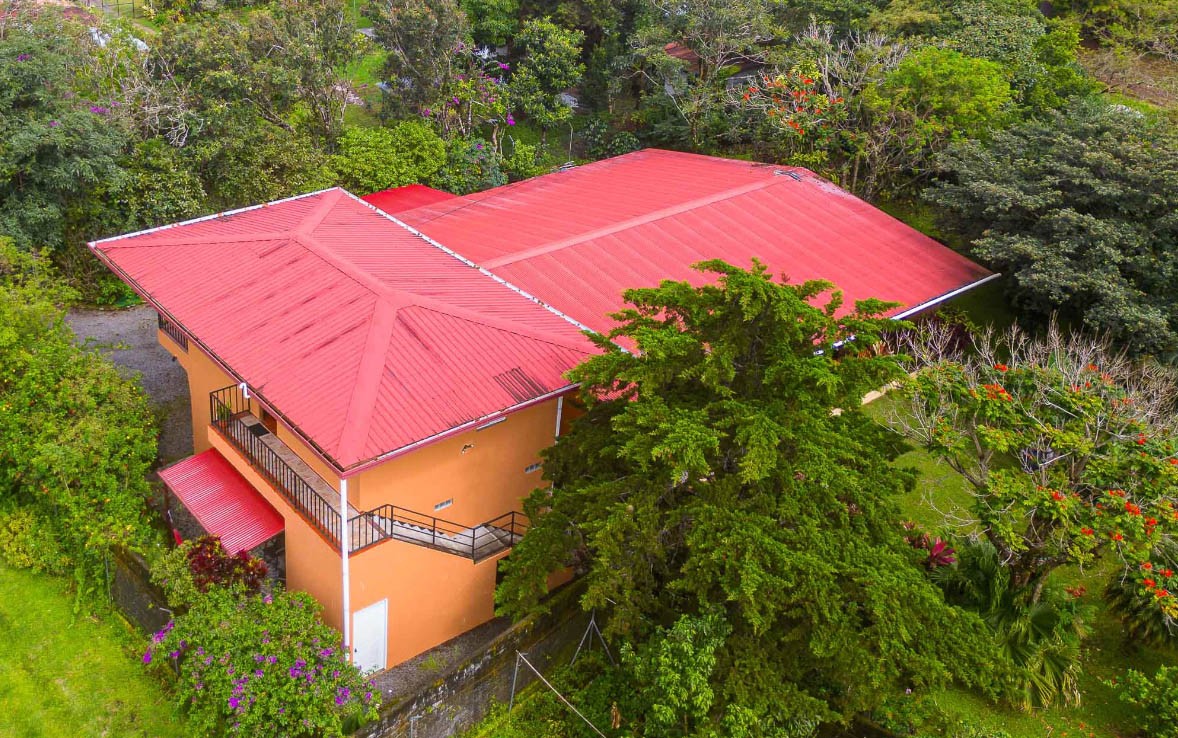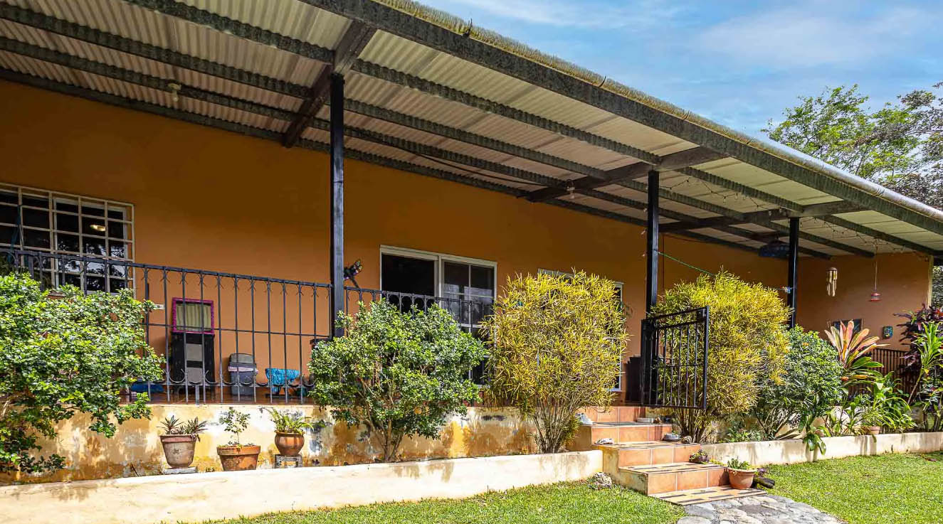 The property is mostly flat with a slight slope. It enjoys gorgeous views towards Jaramillo and the Talamanca Ridge. There are several fruit trees on the property such as guava, limes, bananas, pineapples, Nance Tree, and ginger. Speaking of plants, this property is blessed with many delightful varieties including African Tulips, Triangular Palms, a variety of orchids, several types of Hibiscus, Bougainvillea, Satin leaf trees, Almond, Morning Glories, Pine trees, Ferns, Tropical Cactus, Fan palms, Jazmine trees and Marmalade bushes.