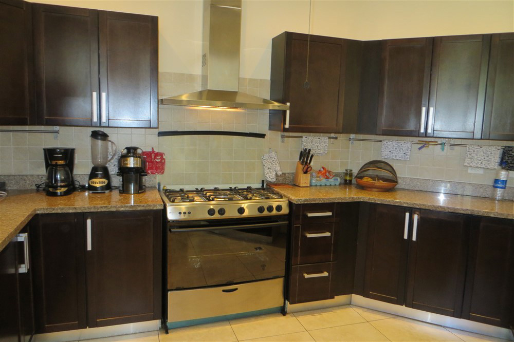 The kitchen has beautiful American-made cabinetry.